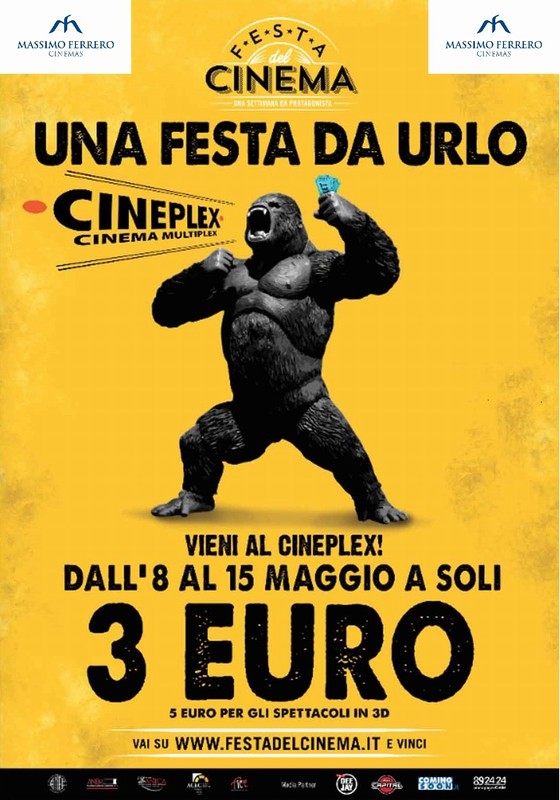 Dopo il successo dell’anno scorso, torna la FESTA DEL CINEMA. Dall’8 al 15 maggio il biglietto per l’ingresso nelle sale cinematografiche di tutta Italia sarà a prezzo ridotto: 3€ per i film in 2D e 5€ per quelli in 3D.