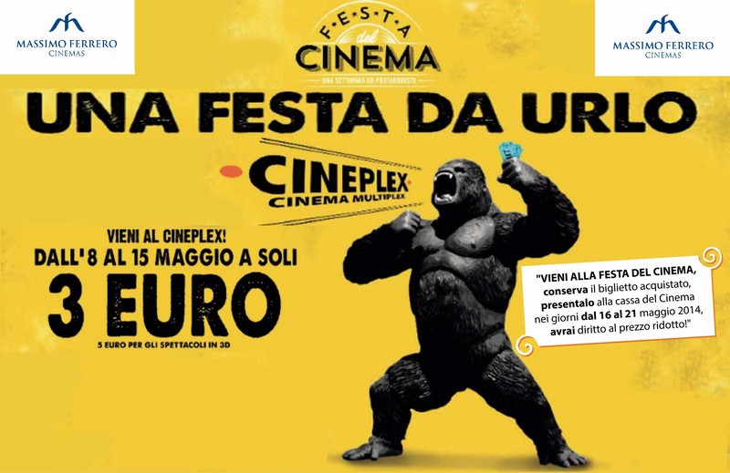 ...vieni alla Festa del Cinema dall'8 al 15 Maggio 2014, conserva il biglietto acquistato, presentalo alla cassa del cinema nei giorni dal 16 al 21 Maggio...avrai diritto al PREZZO RIDOTTO!!!